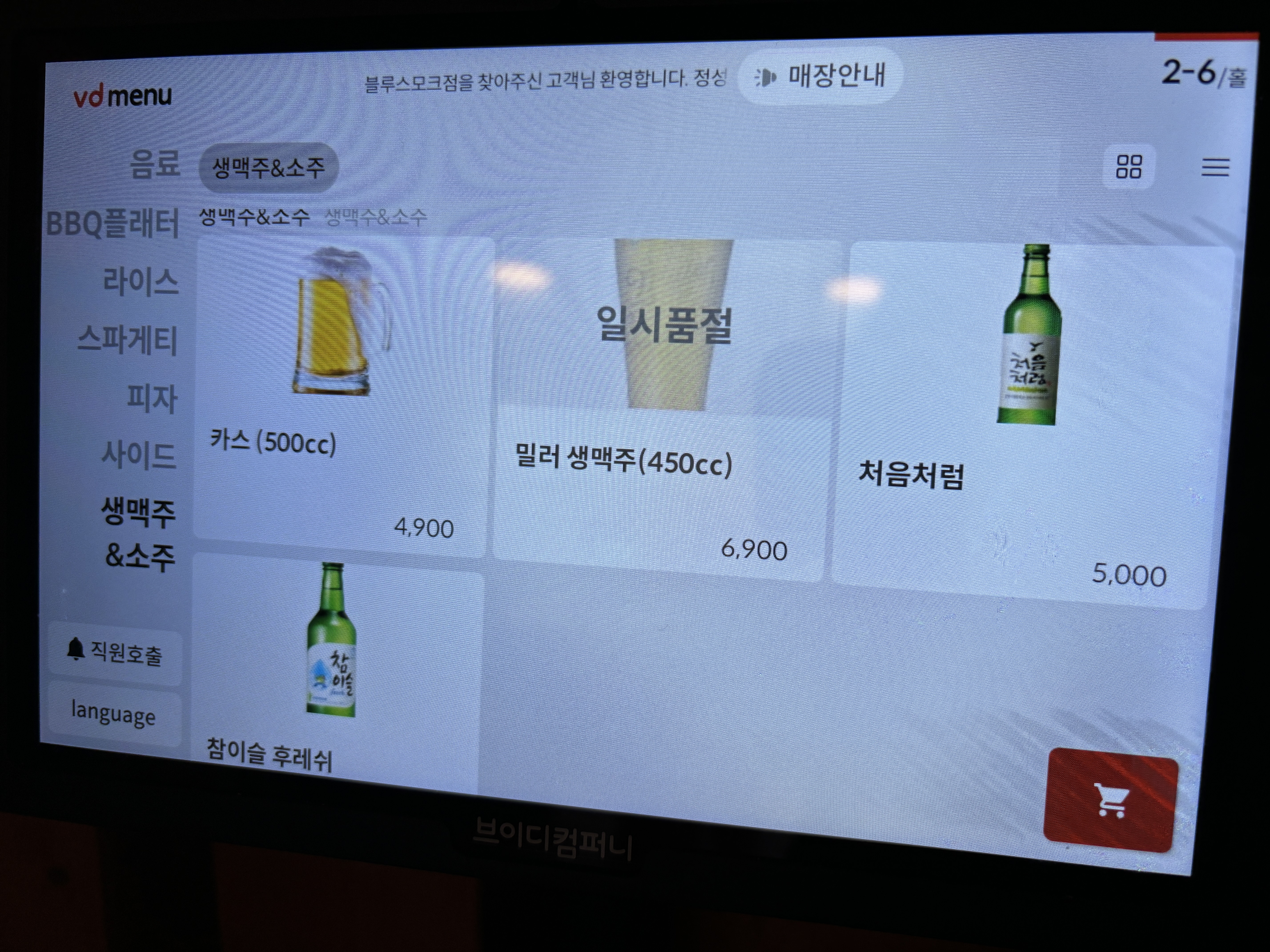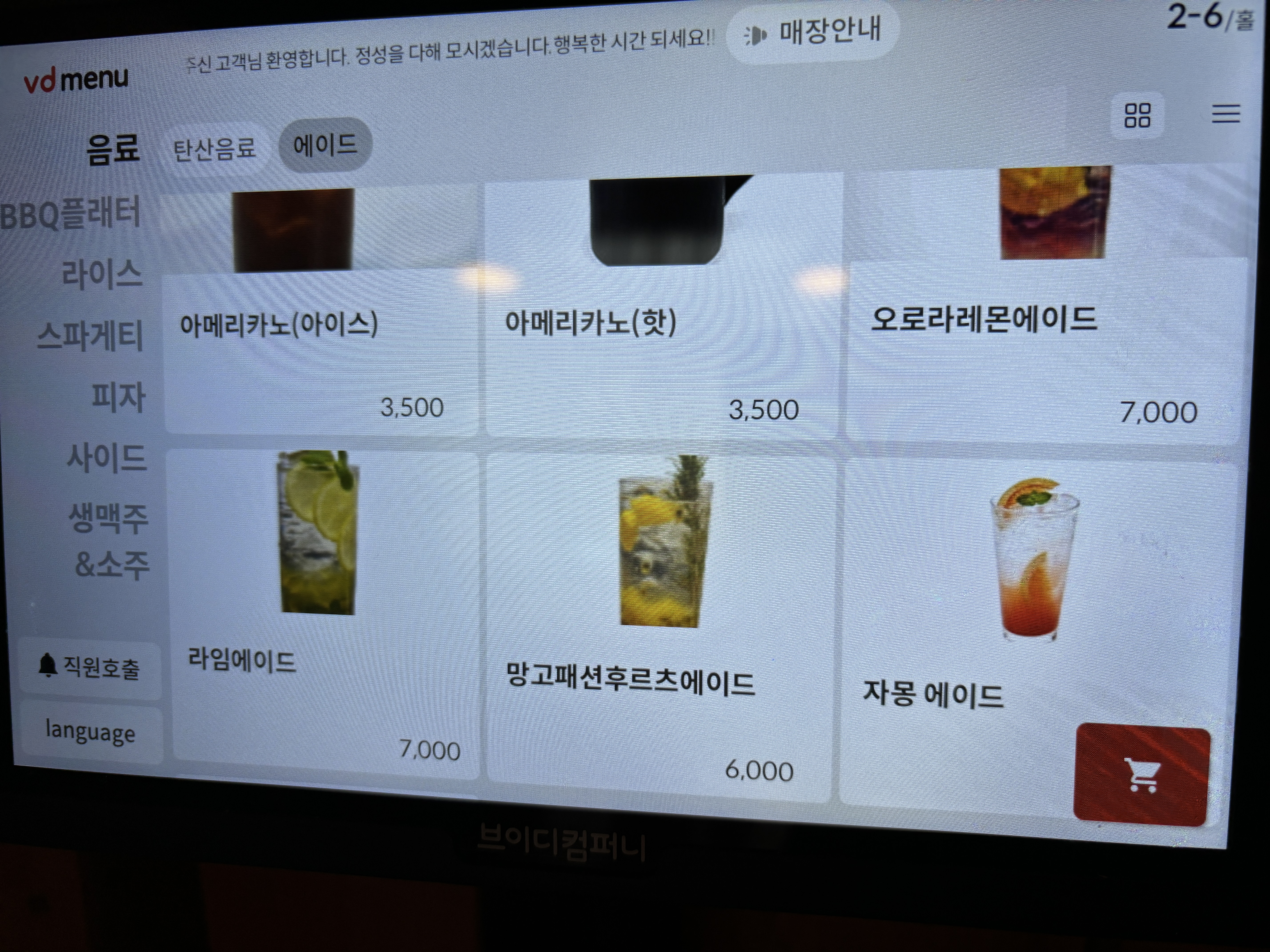 에이드와 커피 종류도 있고 생맥주와 소주 그리고 와인까지